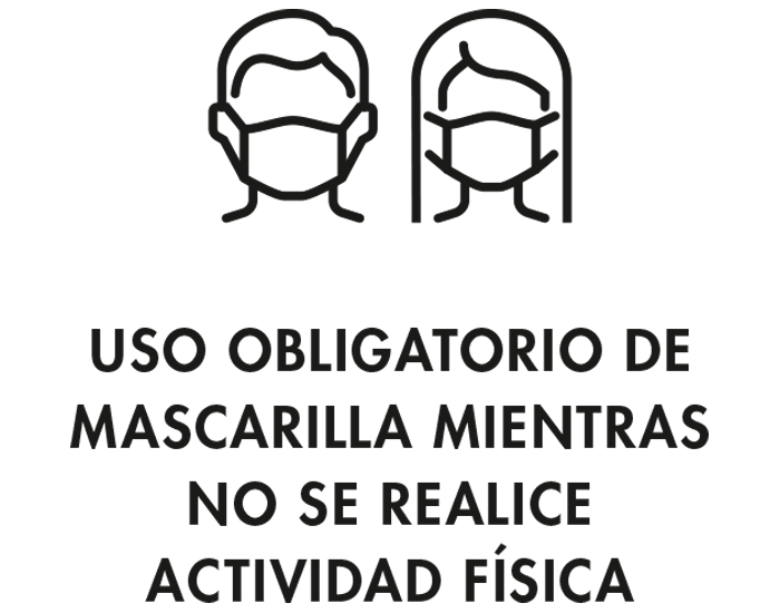El uso de mascarilla es obligatoria en las instalaciones del centro mientras no se realice actividad intensa. Son obligatorios el uso del gel hidroalcohólico, el respeto de las distancias de seguridad, la desinfección de calzado y la limpieza de todos los elementos que utilice el socio en su entrenamiento.